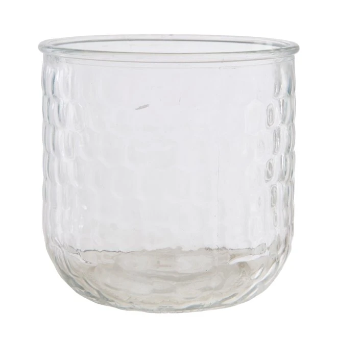 Glasvasens cylinderform gör att den passar lika bra till en låg vid bukett som till en plantering.
