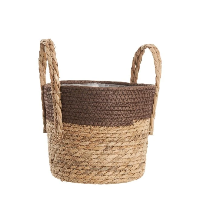 Handtagen gör krukan lätt att flytta och den plastade insidan skyddar underlaget mot att vatten läcker igenom.