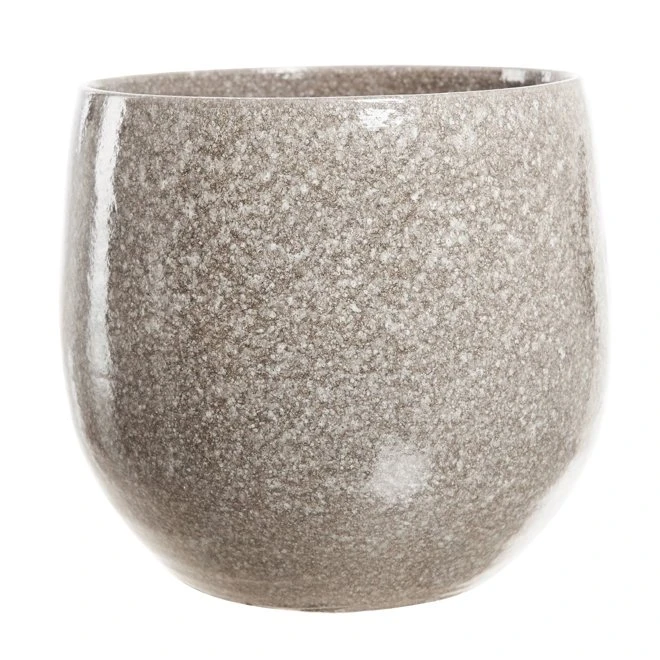 Krukan är övervägande grå, men skiftar i olika grå nyanser till vitt. Svagt rundad nertill och lite insvängd upptill.