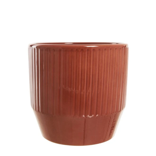 Klassisk kruka som smalnar av nedtill. Dekorerad med lodrätt, randigt mönster.
