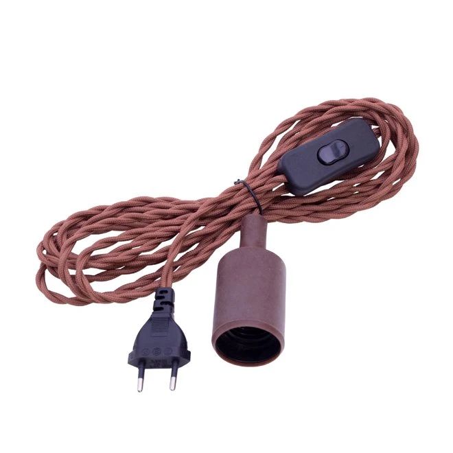 Tvinnad textilkabel med strömbrytare, kabelfäste, upphängningskrok och stickpr…