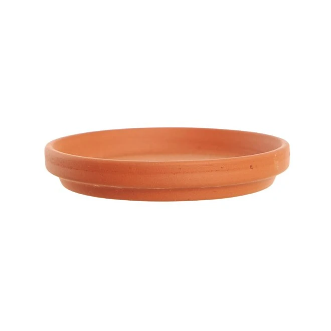 Terrakottafärgad. Fatet passar till en 5,7 cm lerkruka. Tänk på att man ofta har en personlig preferens till hur stort fatet skall vara jämfört med krukans storlek. Våra rekommendationer kanske inte allt…