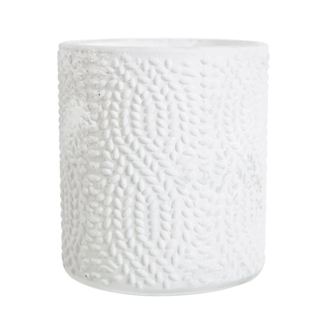 Cylinderformad värmeljushållare med upphöjd ytstruktur i återkommande mönster.