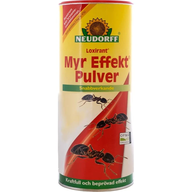 Loxiran Myr Effekt Pulver kan strös ut eller blandas i en vattenkanna och vattnas ut. Effektiv bekämpning av myror, tack vare pyretrum. Bäst effekt uppnås när Loxiran Myr Effekt pulver blandas med vatten och vattnas ut.