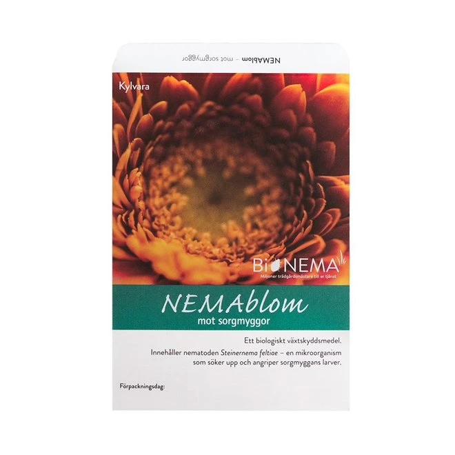 NEMAblom består av nematoder av arten Steinernema feltiae (mikroskopiskt små rundmaskar) som är naturligt förekommande i Sverige. De angriper och dödar larver till vissa skadeinsekter, till exempel sorgmyggor och vattenflugor som ofta finns…