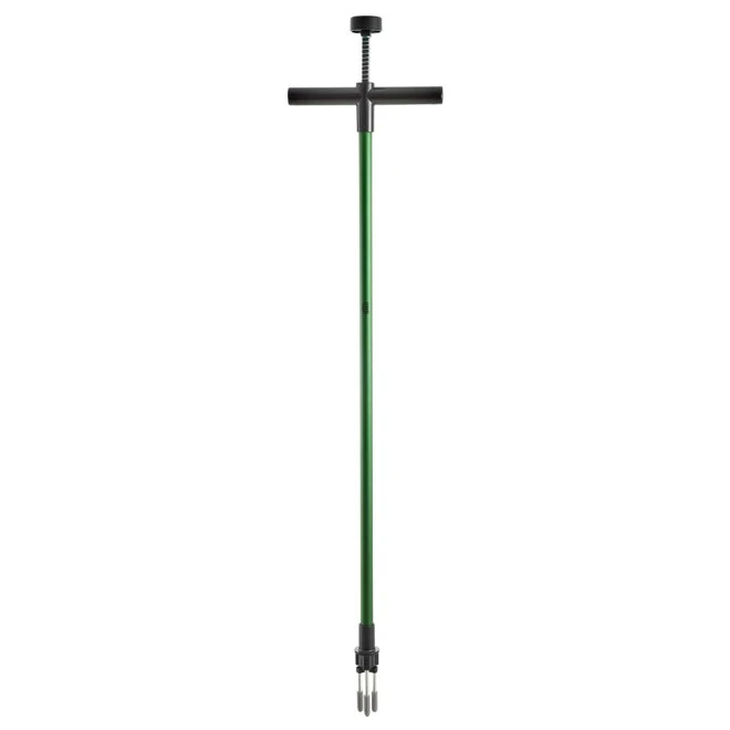 Stick ner den i mitten av maskrosen, vrid om några varv och lyft sedan upp maskrosen och dess rotsystem. Tryck sedan på handtaget så fjädrar maskrosen ut ur upptagaren och ner i lämplig behållare.