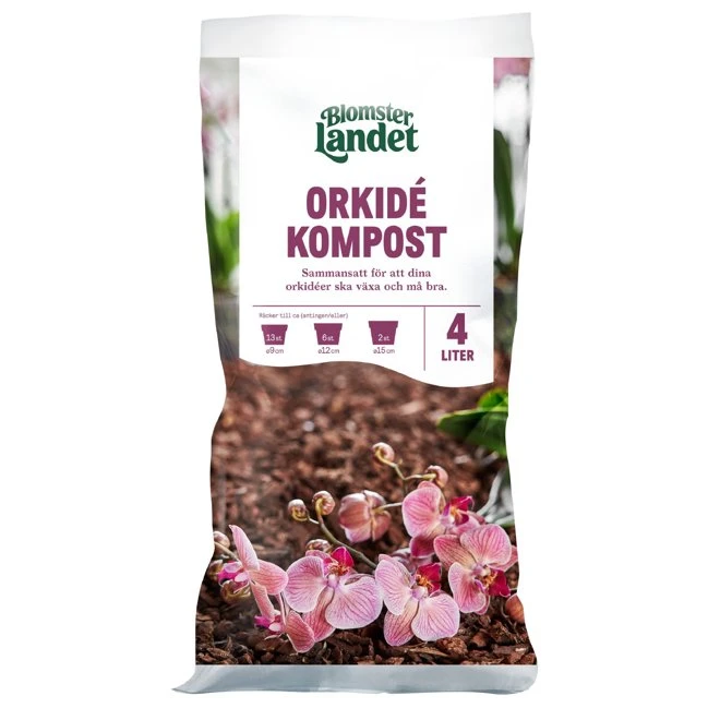 Blomsterlandets egen orkidékompost har komponerats av erfarna odlare för att passa våra vanligaste orkidéer. Innehåller en luftig, svagt gödslad pinjebark.