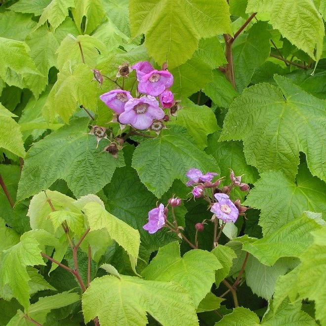 Tålig växt som sprider sig kraftigt med rotskott och bildar frodiga buskar av långa, överhängande skott. Vackra, stora, ljusgröna blad som är dekorativt djupflikiga. Blommar länge från slutet av juni till sensommaren med stora, enkla, viole…