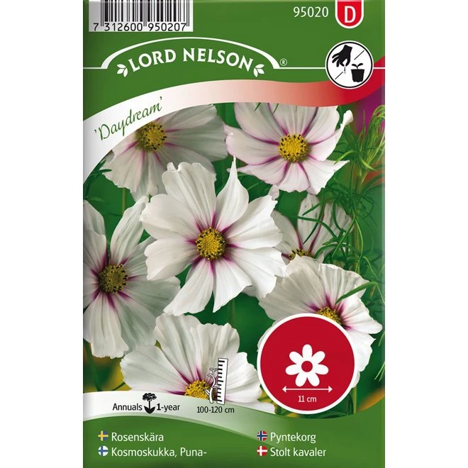 Blommorna har en läcker färgkombination i vitt, ljust rosa och mörkt körsbärsrött. Perfekt för sommarblomsrabatt och snitt. Gödsla sparsamt, annars blir det mer blad och färre blommor. Putsa bort vissna blommor efterhand. Kan behöva bindas …