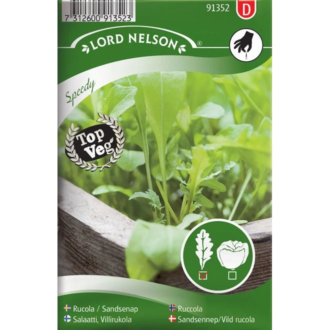 Extra snabbgroende rucola med tandade, smakrika blad. Kan odlas såväl på friland som i kruka. Även utmärkt att odla inomhus året runt, då får bladen en mildare smak. Under högsommaren går plantan lätt i blom – nyp av eventuella blomstänglar…