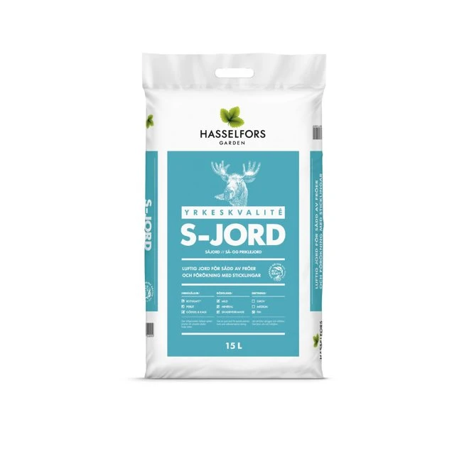 S-jord är en milt gödslad, lucker och finsiktad jord för sådd och förökning med sticklingar. Den är lätt att fylla i krukor, sålådor och i medelstora-stora och stora pluggar. Det går bra att odla både prydnadsväxter och ätliga växter i jord…