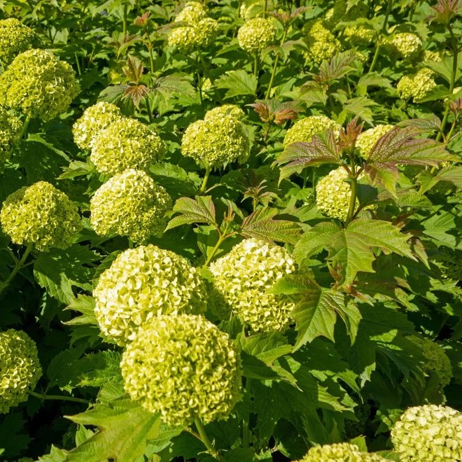 Härdigt och tätväxande olvon från Finland. Blommar med stora gräddvita, runda blomställningar på sommaren. Lockar då till sin bin och humlor. Får fin röd höstfärg.
