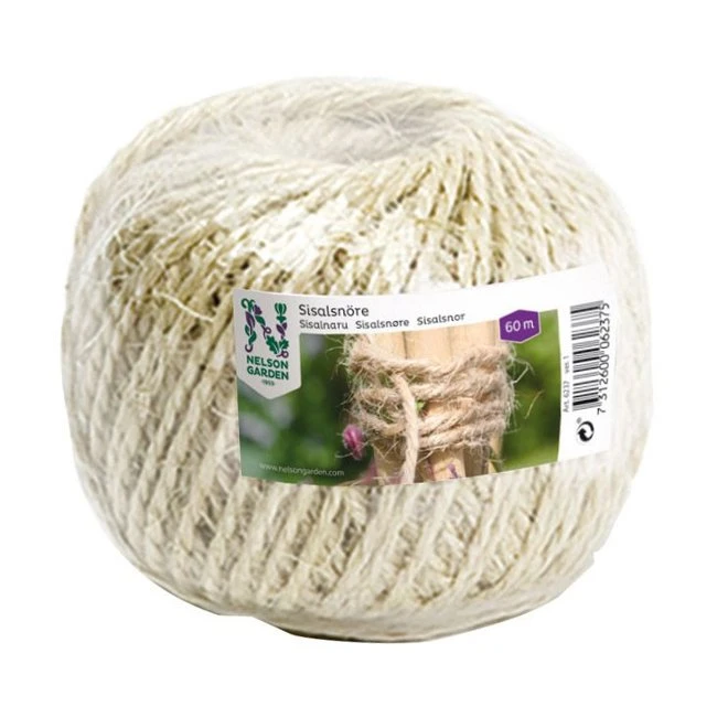 Sisalsnöre som passar bra för uppbindning av olika sorters växter i trädgården. Naturfärgad sisal, 2-trådigt.