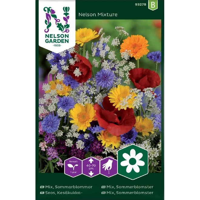 Trevlig och omtyckt blandning med många av våra älskade sommarblommor som t ex blåklint, ringblomma, aster, zinnia, romersk riddarsporre med flera.Trivs bäst i näringsrik och väldränerad jord. Vattna vid torka. Klipp bort vissna blommor eft…