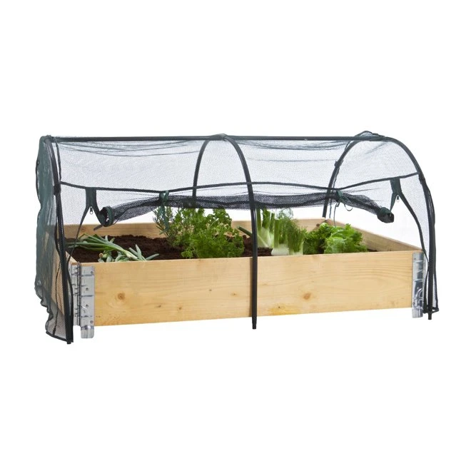 Svart ställning för montering utav plastöverdrag (drivhus), fiberduk eller nät på en pallkrage.