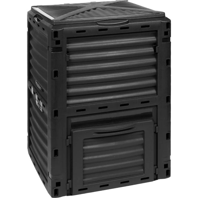 Kompostbehållare för trädgårdsavfall. Designen ger god luftcirkulation vilket gynnar processen som gör avfallet till värdefull och näringsrik mylla till trädgården. Praktisk kompost som även kan användas för efterkompostering. Fyra sidor, l…
