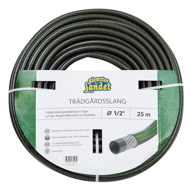 Trädgårdsslang bestående av tre lager som ger slangen både styrka och flexibilitet.