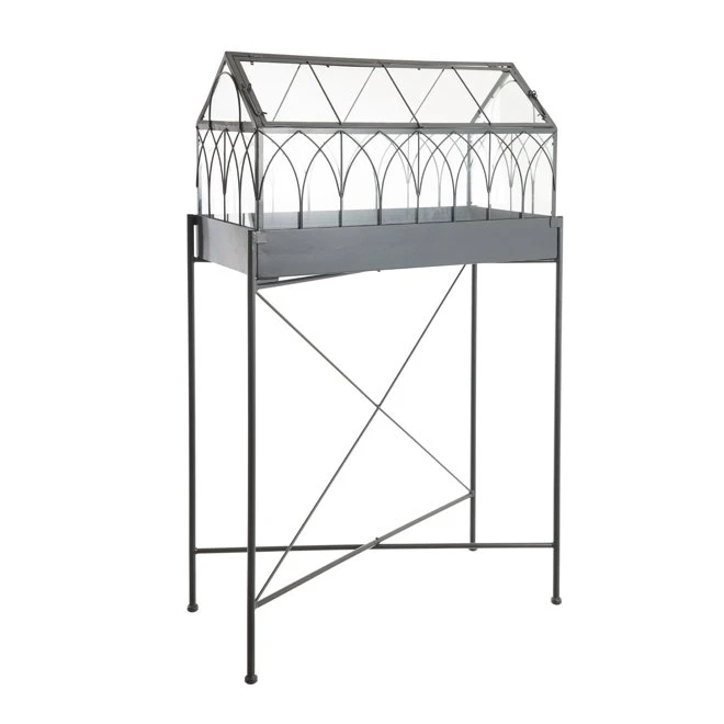 Miniväxthus i metall och glas, med ett öppningsbart takfönster.