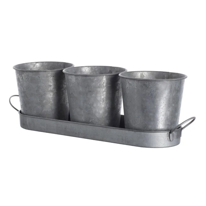 Klassiska släta zinkkrukor med liten rundad kant upptill och nertill på krukan.